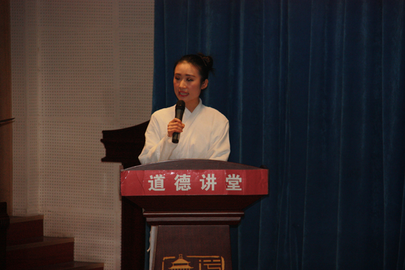 本次道德讲堂以“守护精神家园、弘扬传统文化”为主题,按照“前言、自我省心、行崇德礼、唱道德歌曲、讲道德故事、诵道德经典、念劝善词、作道德承诺、一堂一善事、送尚德祝福”十个环节依次展开。在“讲道德故事”环节,教师刘文婷给大家讲述了他们学校敬业奉献模范教师----王旭东和严晓玲两位老师爱生如子的感人事迹,使在座的每个人都深受感动。整个活动中,尤其是在诵道德经典的环节中,该校48名学生身着汉服,一字一句深情诵读儒学经典《三字经》的学子风采,使人不由不被传统文化中如何为人处事的教诲所打动,给参加活动的来宾留下了深刻的印象。