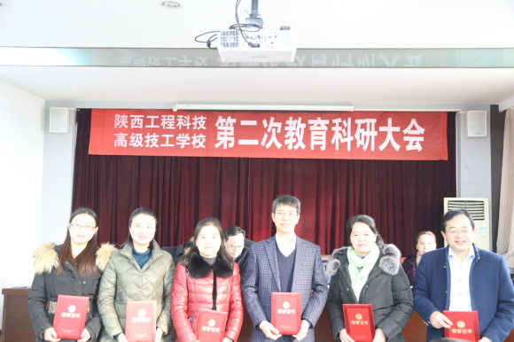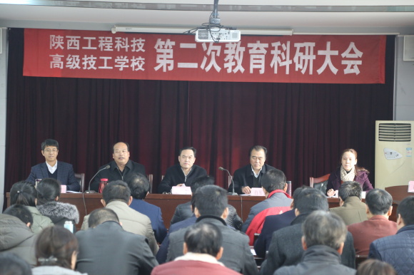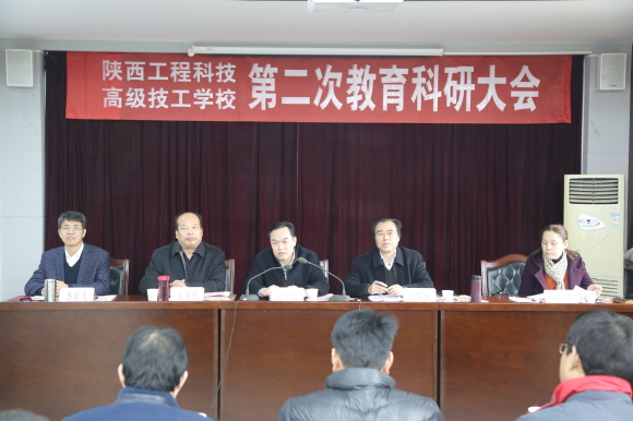 会上,副校长李若飞作了题为《教育科研创品牌技能育人争一流》的教育科研工作报告,报告详细地总结了2014年以来学校在教育科研工作方面取得的成绩。 2014年以来,学校在教师培训、教学研究和竞赛、校本教材开发等方面取得了显著成效,有5位教师入选陕西省技工院校专家库成员,2名教师被省人社厅聘为省级教学督导员,2名教师被省教育厅、人社厅评为全省中职学校教学能手,1名教师荣获“劳动社杯”全省技工院校教学能力大赛三等奖;在全省技工院校教学研究成果评比中,有9篇论文获得一等奖,7篇论文获得二等奖,6篇论文获得三等奖,3篇论文获得优秀奖;1份教案获得一等奖,1份教案获得二等奖;完成了《地形测量实训指导书》《国学读本》《酒店英语100句》初稿,实现了我校校本教材开发零的突破。同时,报告也客观地指出了存在的问题和不足,并从五个方面科学规划了今后三年的主要任务,为今后一段时间学校教育科研工作指明了方向。.jpg)